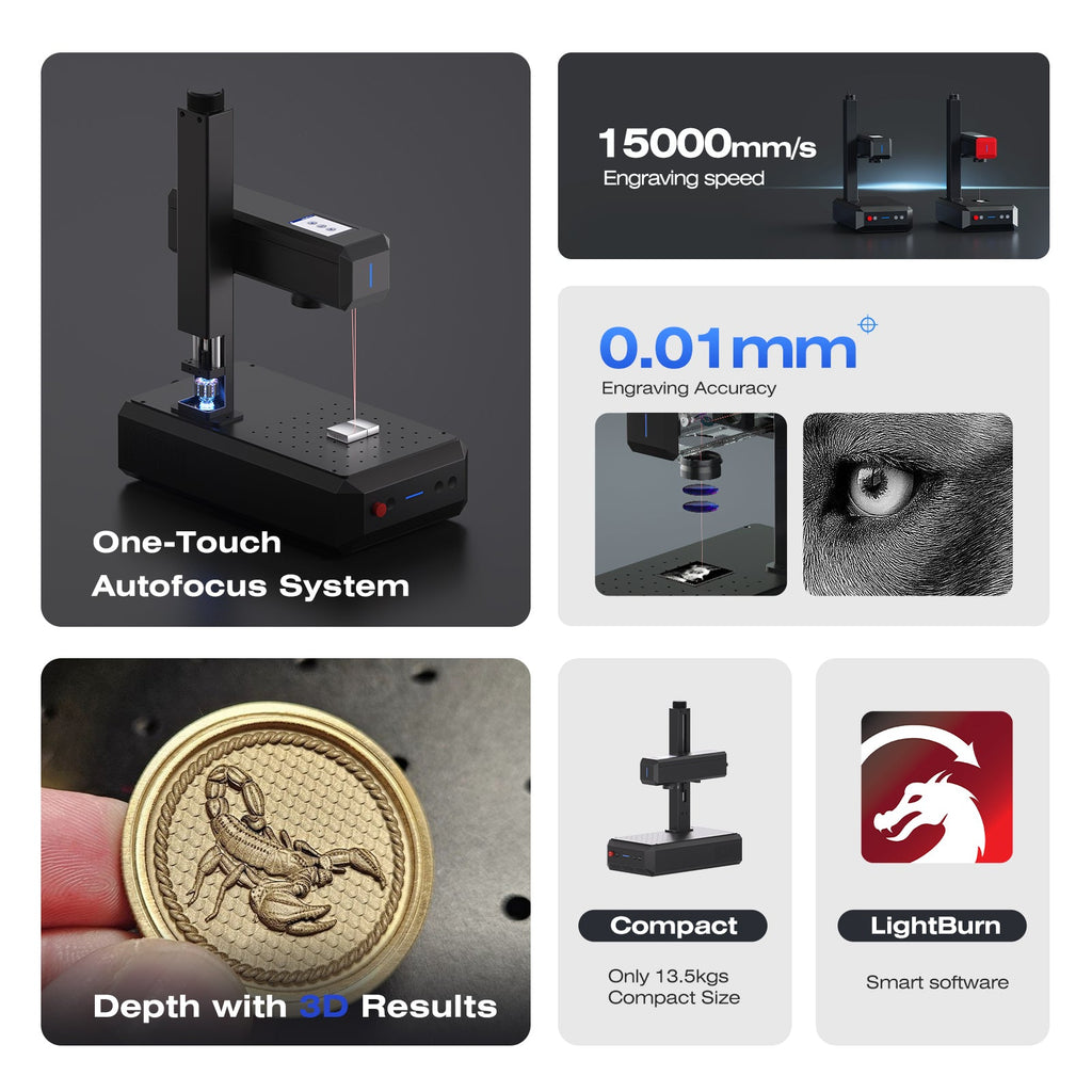 Its compact all-metal chassis, intelligent autofocus, and fully enclosed optical path ensure consistent precision while maintaining a safe, efficient workspace. Whether you’re engraving tools, jewelry, knives, tumblers, industrial components, or serialized production parts, the ComMarker B6 provides dependable performance with exceptional beam quality.