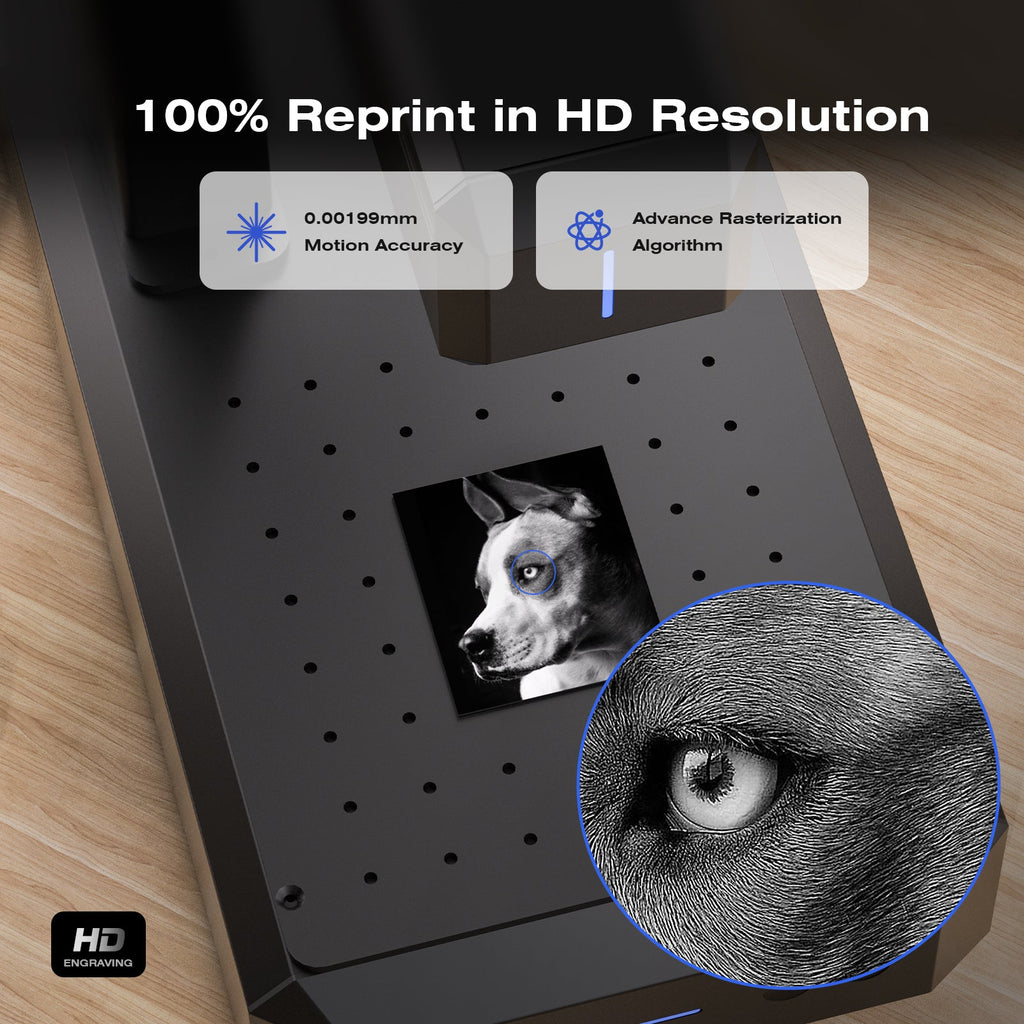 Automatically adjusts focus height for consistent engraving depth and clarity with no manual measuring required.