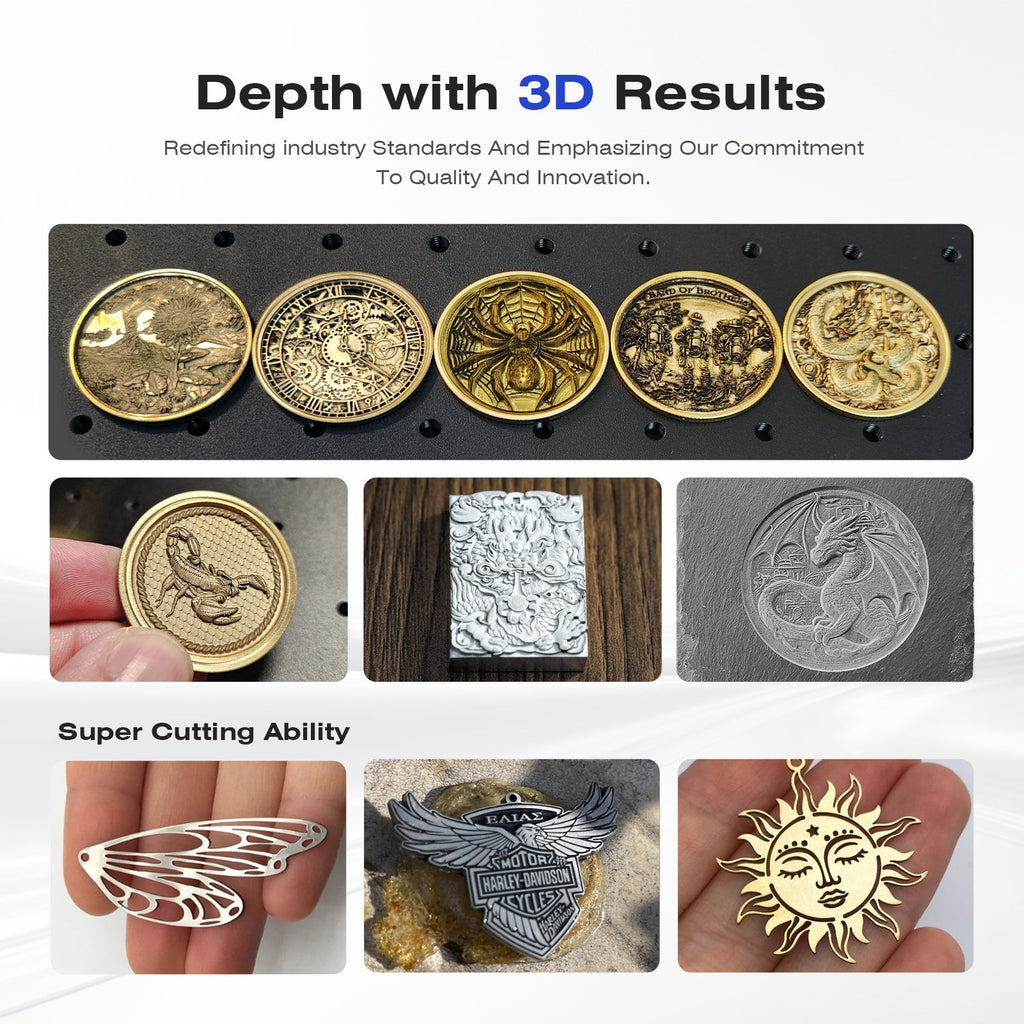 Produce vivid full-color engravings on stainless steel (varies by lens and laser power).