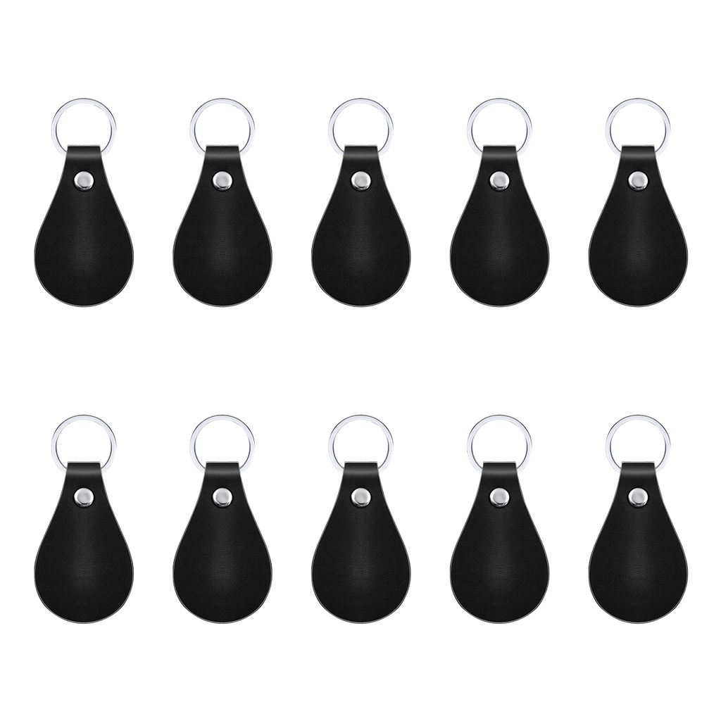 Clean black PU leather keychains ideal for professional CO₂-engraved branding, promotional products, and personalized gifts.