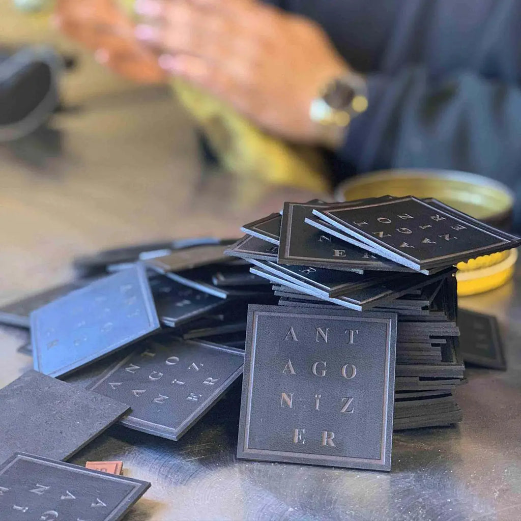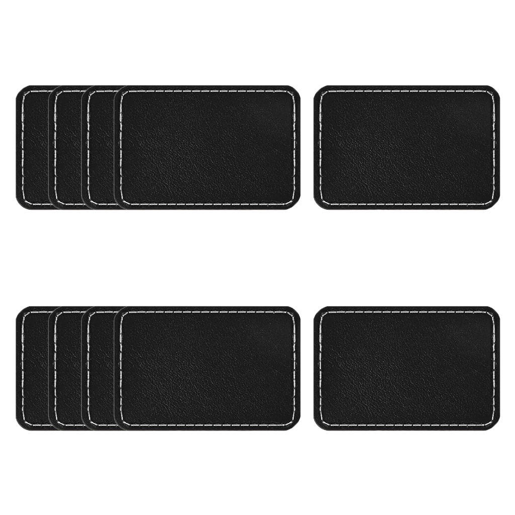 These black rectangular PU leather nameplates provide a bold, professional look with clean, high-contrast CO₂ engraving.