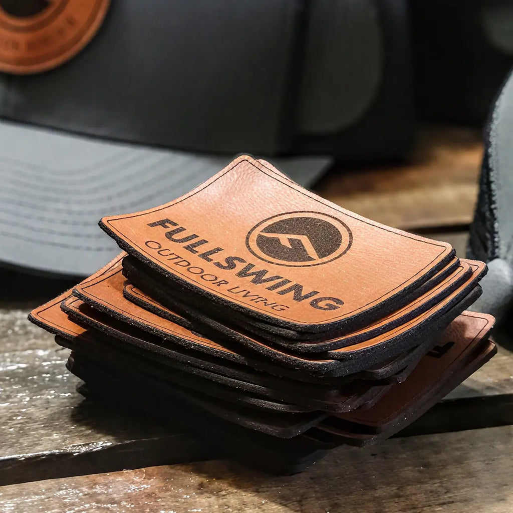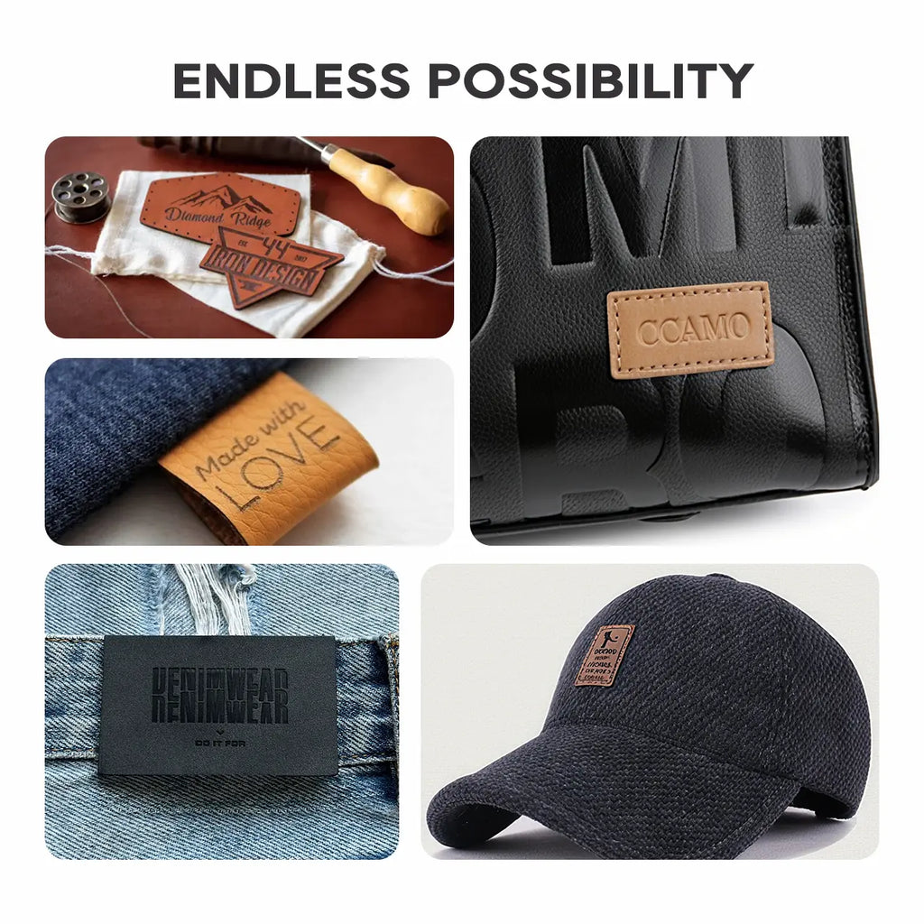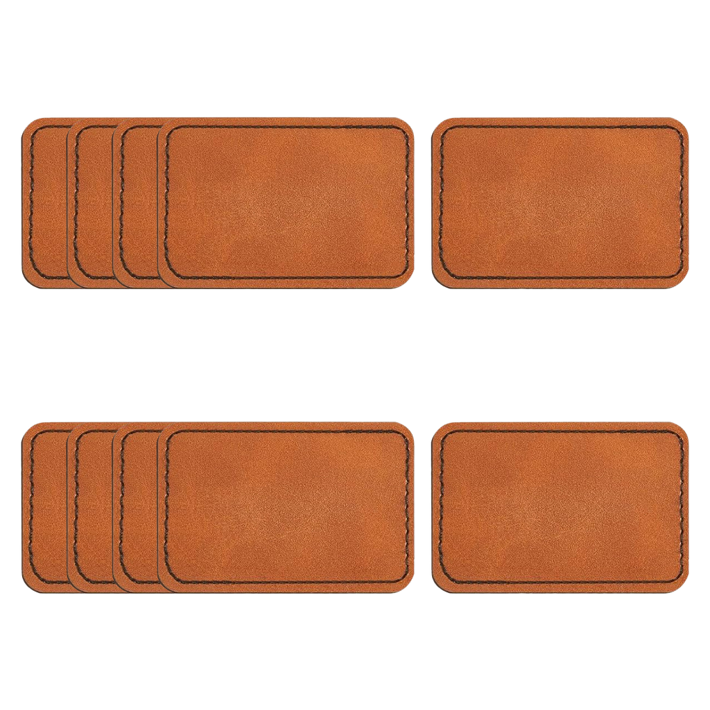 A set of rectangular brown PU leather nameplates perfect for engraved tags, labels, patches, and custom craft designs.