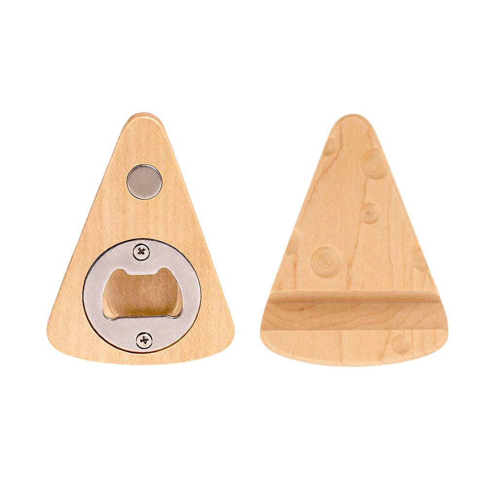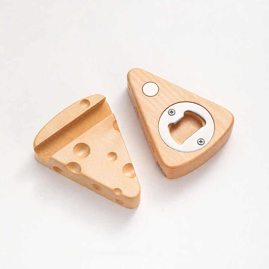 Fun cheese-shaped wooden bottle openers designed for CO₂ laser engraving—great as gifts, bar accessories, or novelty items.