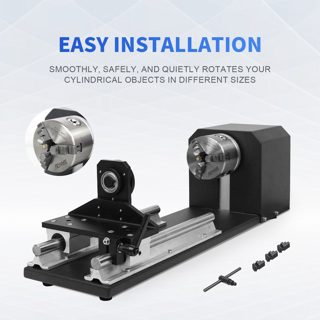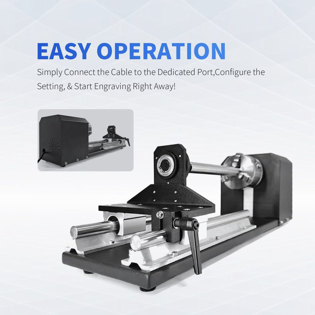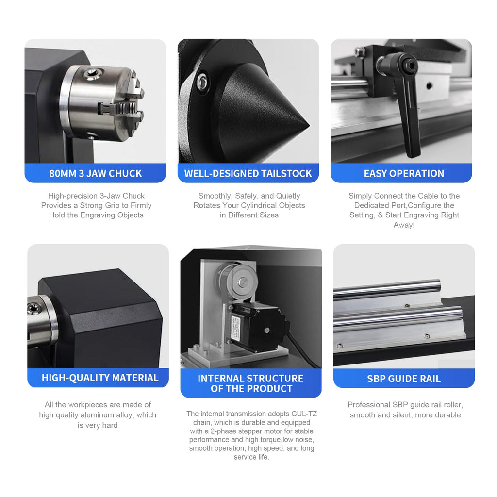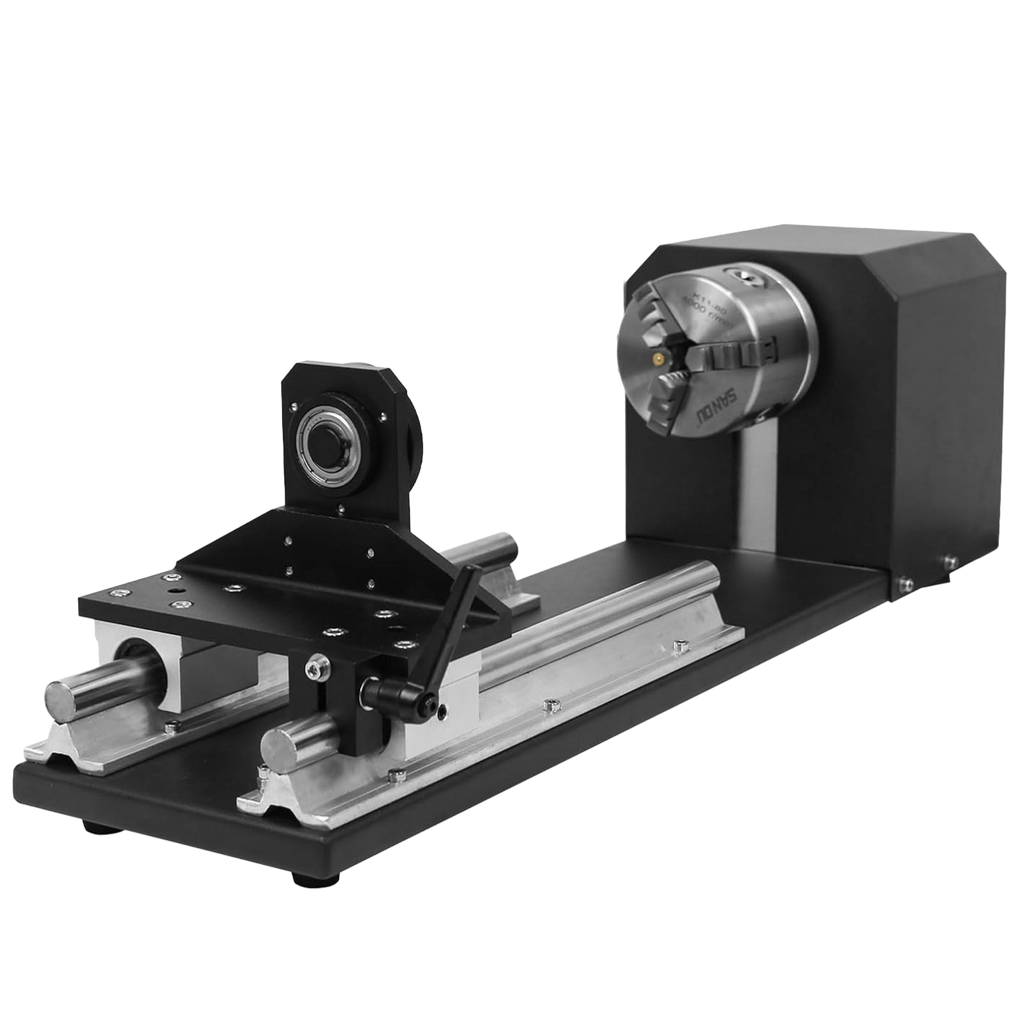 The D80 Deluxe Kit includes the D80 rotary plus enhanced accessories for improved stability, gripping power, and versatility. Perfect for professionals engraving heavy tumblers or metal cylinders.