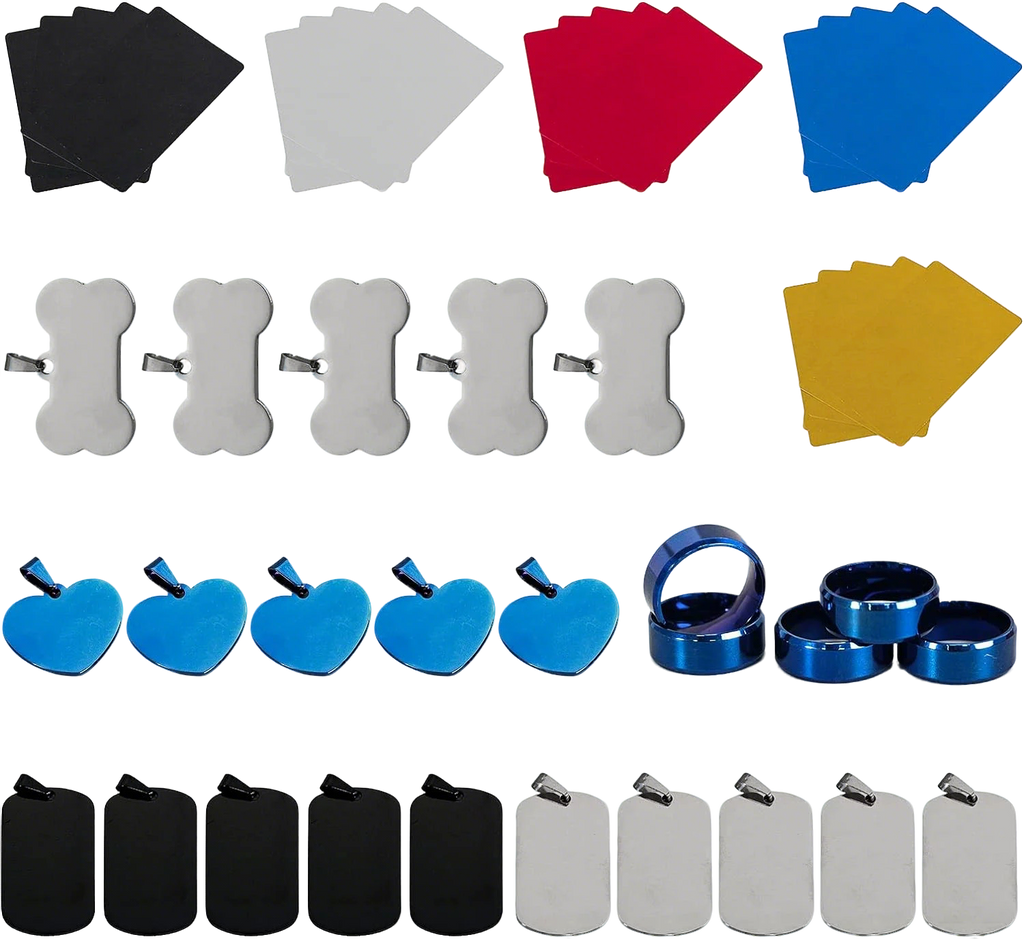 Includes metals such as anodized aluminum, stainless steel, coated tags, sample plates