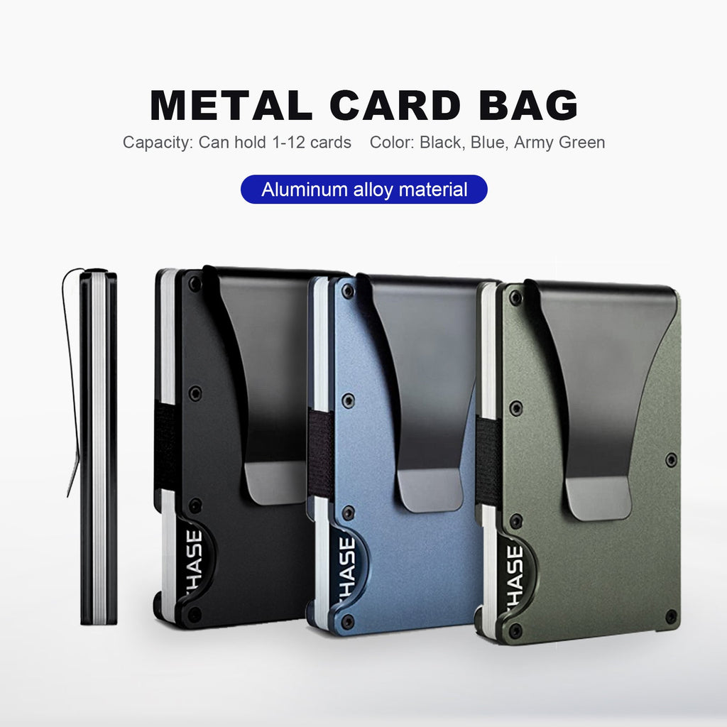 A premium, RFID-shielded metal card holder featuring a laser-engrave-ready exterior surface—perfect for personalization or corporate branding.
