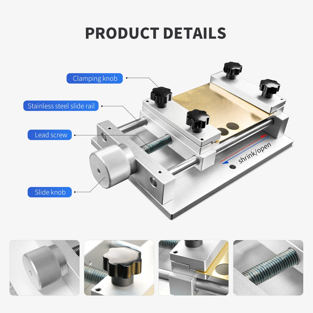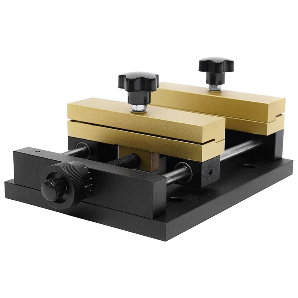 The Metal Sheet Holder secures thin metal cards, tags, and plates firmly in place to prevent shifting during marking.