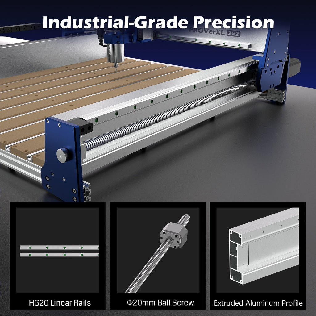 The Genmitsu PROVerXL 2×2 is a compact industrial-grade CNC router designed for makers, fabrication shops, and small manufacturers who need a rigid, stable, and accurate machine with a generous 24" × 24" (600 × 600 mm) working area. Built with reinforced steel plates, heavy-duty extrusions, precision linear guide rails, and leadscrew-driven motion on all axes, the PROVerXL 2×2 delivers professional accuracy for woodworking, plastics, composites, foam, and soft metals.