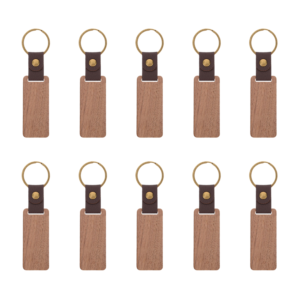 A set of rectangular walnut wood keychains with rich natural grain—perfect for custom CO₂ engraved designs.