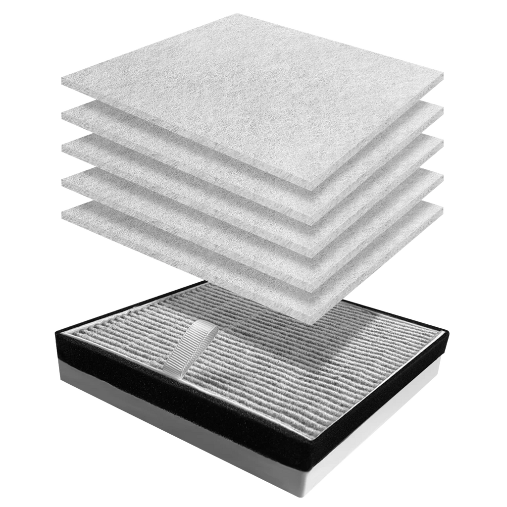 Multi-layer filtration: pre-filter + HEPA + activated carbon