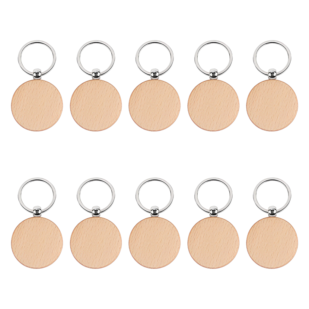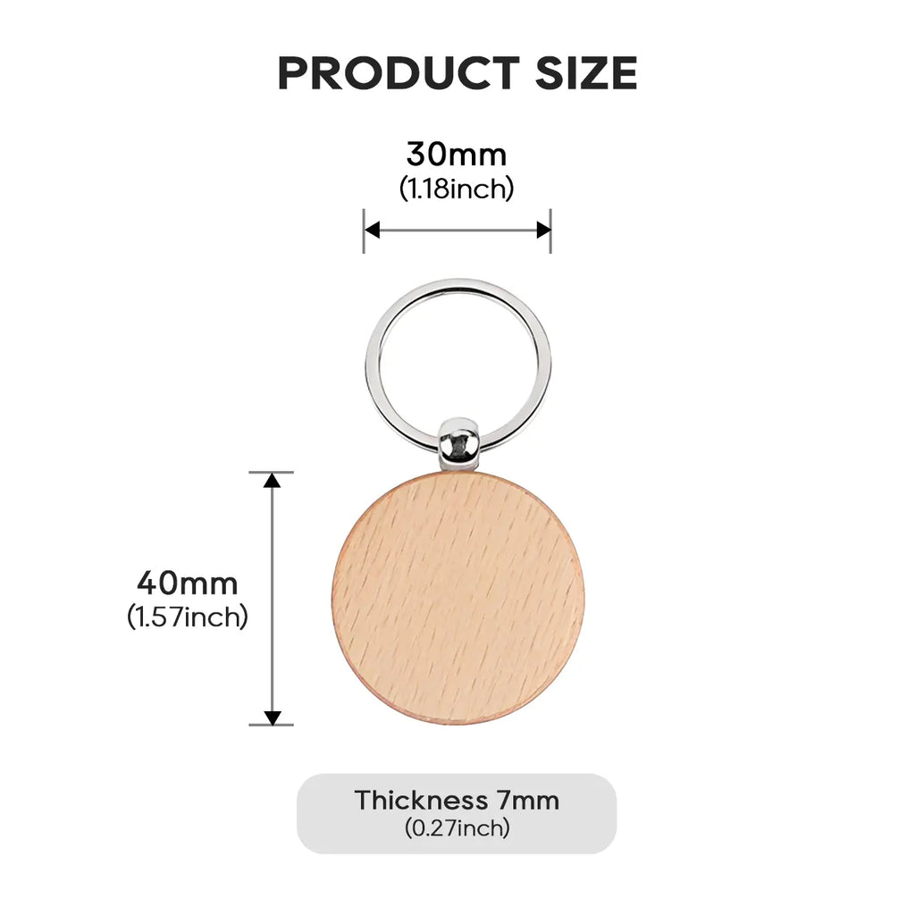 These round wooden keychains are crafted from smooth, laser-ready wood, ideal for engraving logos, art, and messages.