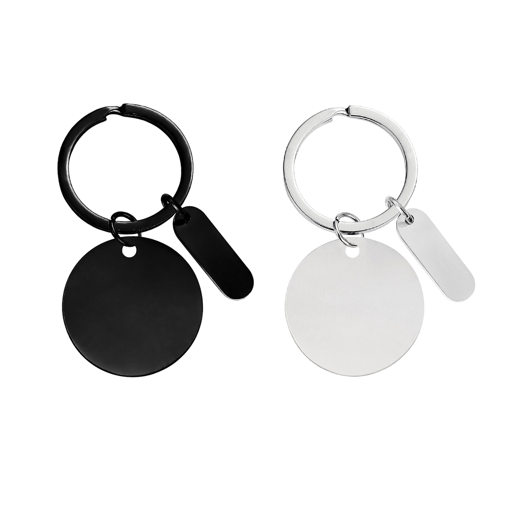 Durable stainless steel keychain blanks ideal for deep engraving, logos, text, QR codes, and personalized designs.