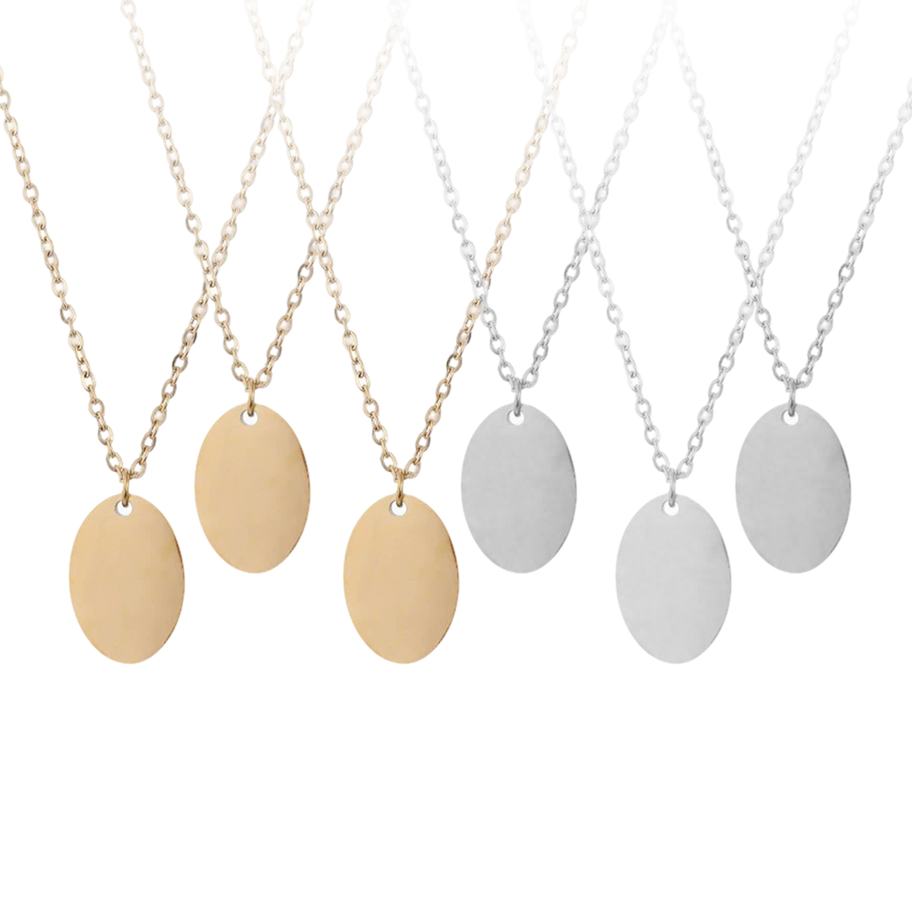 These stainless steel necklaces offer a durable, laser-ready pendant area ideal for personalized engravings, monograms, or jewelry branding.